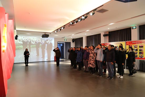 參觀中,多媒體虛擬技術(shù)大家穿越時(shí)空回到1920年,與李大釗同志在“北大課堂”共同探討理想信念、人生價(jià)值與黨性修養(yǎng)等問題;身臨其境地看到江竹筠同志和獄友們?cè)谠叶幢O(jiān)獄為慶祝新中國(guó)成立繡紅旗的感人場(chǎng)景;學(xué)習(xí)焦裕祿、丁秀蘭、黃旭華等多位信念堅(jiān)定的優(yōu)秀共產(chǎn)黨員的感人事跡;通過優(yōu)秀黨員的事跡展播,深刻領(lǐng)會(huì)到“平常時(shí)候看得出來(lái)”、“關(guān)鍵時(shí)刻站得出來(lái)”、“危機(jī)關(guān)頭豁得出來(lái)”的共產(chǎn)黨員本色;面對(duì)耿飚之問、蘇聯(lián)解體、落馬官員懺悔等,黨員們駐足深思,時(shí)刻警醒自己要不忘初心、嚴(yán)守黨員底線。最后,研究所黨委書記周霞帶領(lǐng)全體黨員,面對(duì)莊嚴(yán)的黨旗,舉起右拳,鄭重宣讀入黨誓詞,重溫入黨時(shí)的莊嚴(yán)承諾。