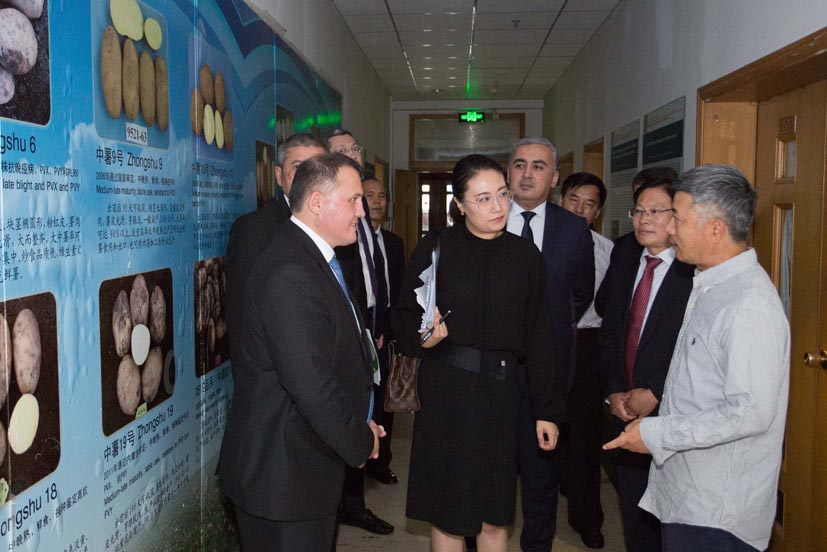 隨后,哈伊托夫一行在張圣平副所長的陪同下參觀了馬鈴薯育種與栽培實驗室,在卞春松副研究員的詳細(xì)講解下,對研究所在馬鈴薯育種與栽培領(lǐng)域的研究成果有了更加深入的了解,由其是馬鈴薯脫毒技術(shù)。哈伊托夫表示馬鈴薯是烏茲別克斯坦的重要糧食作物,種植面積逐年增長,希望能與中方在蔬菜花卉領(lǐng)域加強合作、積極交流、增進(jìn)互訪,實現(xiàn)中烏合作共贏,和諧發(fā)展。