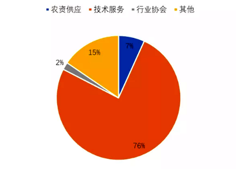 行業(yè)服務(wù)者問卷共收到310份,被調(diào)查者主要包括科研人員、行業(yè)協(xié)會、農(nóng)資經(jīng)營者、產(chǎn)中農(nóng)機(jī)與植保等服務(wù)組織,其中技術(shù)服務(wù)人員占比 76%,農(nóng)資供應(yīng)占 7%,行業(yè)協(xié)會占 2%,其他占 15%。