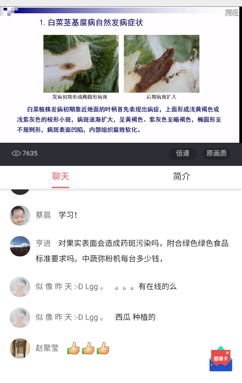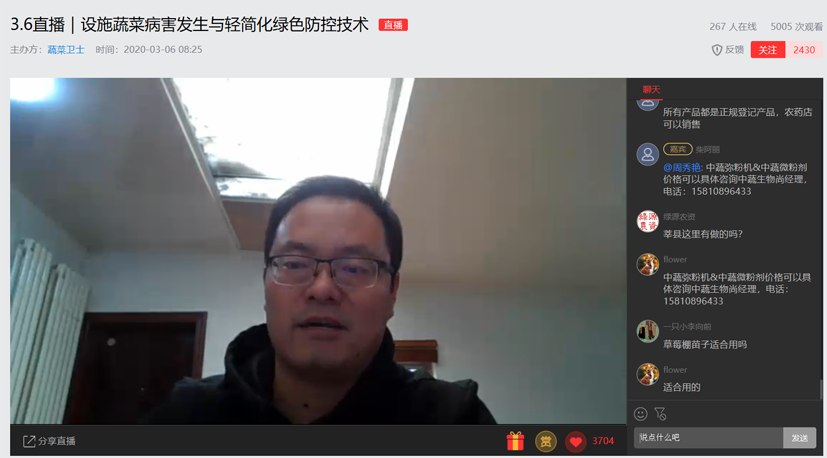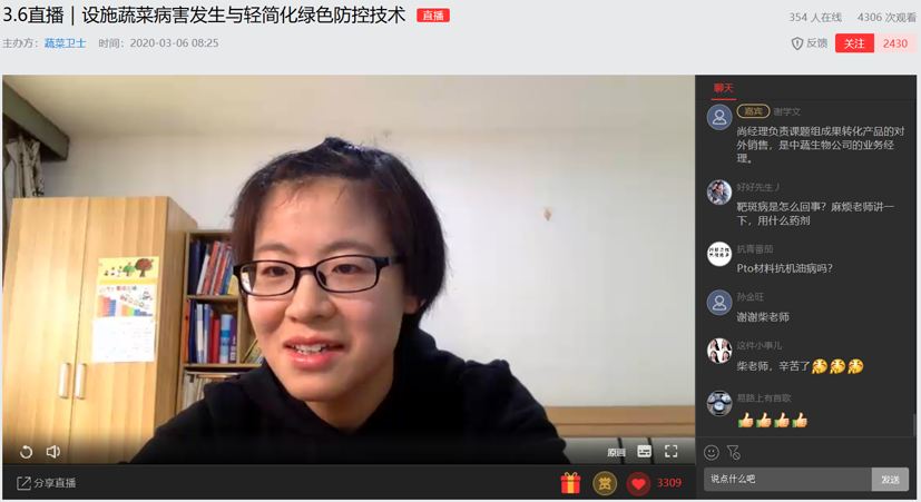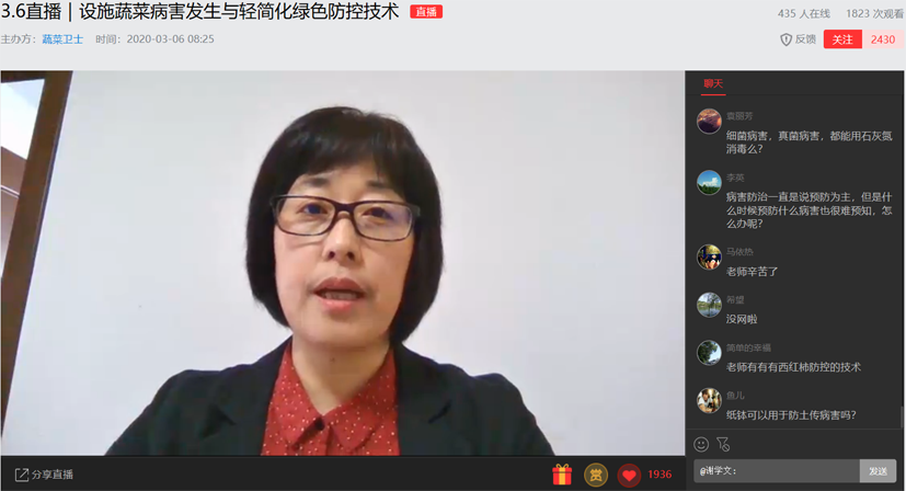 此次直播培訓(xùn)內(nèi)容豐富,專家講解深入淺出,通俗易懂,充分利用了線上直播平臺(tái)進(jìn)行培訓(xùn)、指導(dǎo)、答疑,取得了良好的效果。全國(guó)各地設(shè)施蔬菜生產(chǎn)一線超過5800人實(shí)時(shí)在線觀看直播,截止發(fā)稿時(shí)通過重播的方式觀看人數(shù)達(dá)到7635人,推動(dòng)早春蔬菜病害安全防控技術(shù)的推廣,為各地疫情期間蔬菜安全生產(chǎn)提供了有效的技術(shù)保障。