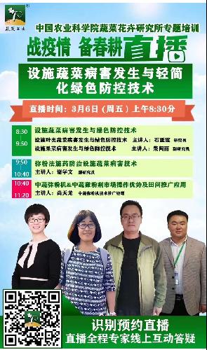 當(dāng)前,全國(guó)疫情逐漸趨于穩(wěn)定,各地蔬菜生產(chǎn)也逐漸恢復(fù)。作為蔬菜花卉學(xué)科唯一的國(guó)家級(jí)公益性專業(yè)研究機(jī)構(gòu),中國(guó)農(nóng)業(yè)科學(xué)院蔬菜花卉研究所深入貫徹習(xí)近平總書記春耕生產(chǎn)重要指示精神,在疫情防控的前提下,有序高效的推動(dòng)復(fù)工復(fù)產(chǎn)。針對(duì)今年早春陰雨高濕、蔬菜病害危害嚴(yán)重的情況,2020年3月6日,組織研究所植保專家開展了“戰(zhàn)役情、備春耕”專題線上培訓(xùn),詳細(xì)講解了設(shè)施蔬菜病害發(fā)生與輕簡(jiǎn)化綠色防控技術(shù)。