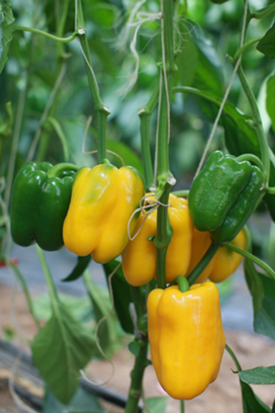今年這部分品種以高端設(shè)施蔬菜(甜辣椒)育種為目標(biāo),試驗(yàn)和展示的品種分為五個(gè)主要類型,適合溫室栽培的甜椒、彩椒、紅泡椒、羊角椒、螺絲椒。目前看,這幾類品種中都有部分組合超過了對(duì)照品種,并且受到中間商和種植戶的高度肯定。