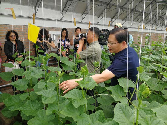 圖4:會議代表參觀蔬菜花卉所黃瓜育種試驗(yàn)