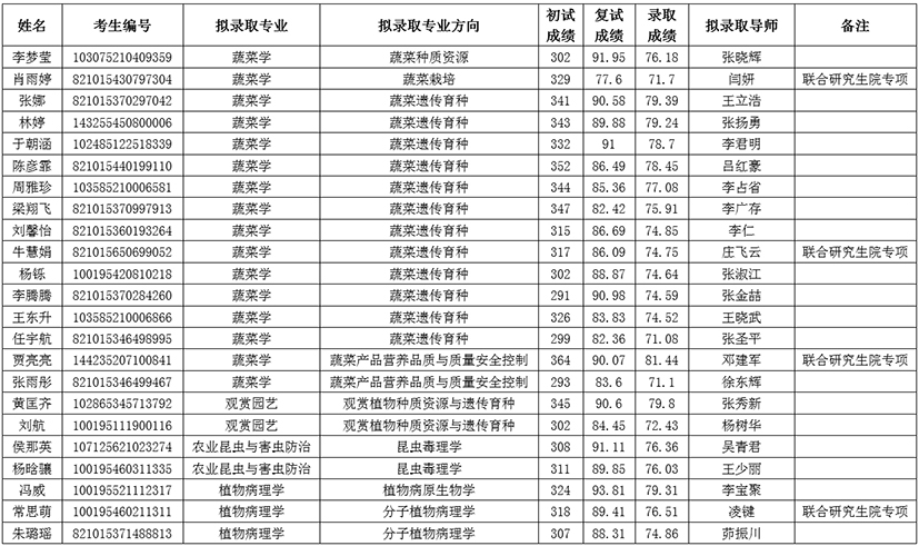 蔬菜花卉研究所2025年統(tǒng)考碩士研究生擬錄取公示
