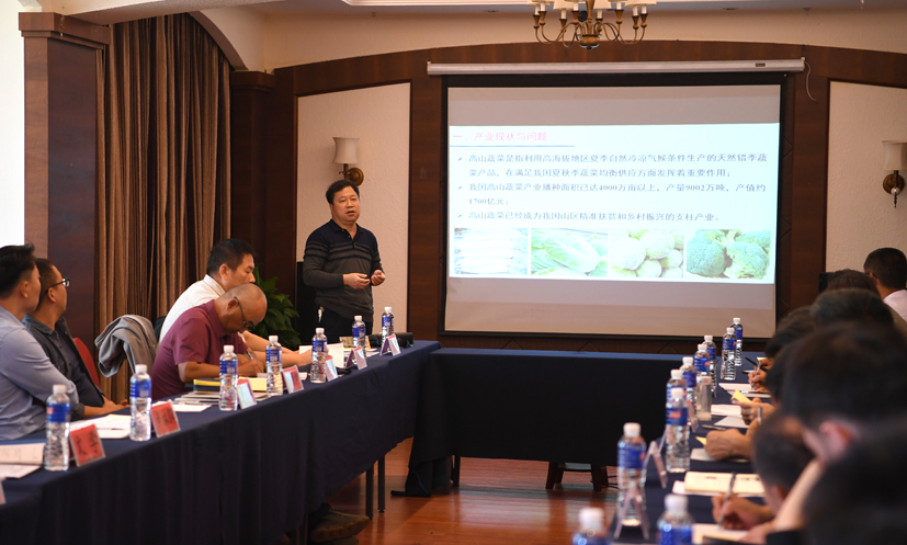8月26日,中國(guó)農(nóng)業(yè)科學(xué)院蔬菜花卉研究所于賢昌研究員在介紹項(xiàng)目進(jìn)展情況。