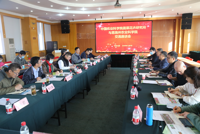 11月9日上午,湖北恩施州農(nóng)科院院長(zhǎng)李衛(wèi)東一行8人到蔬菜花卉所調(diào)研,就進(jìn)一步深化合作交流研討。院人事局副局長(zhǎng)李巨光、所長(zhǎng)張友軍、黨委書記周霞、所領(lǐng)導(dǎo)班子成員和相關(guān)處室負(fù)責(zé)人出席。
