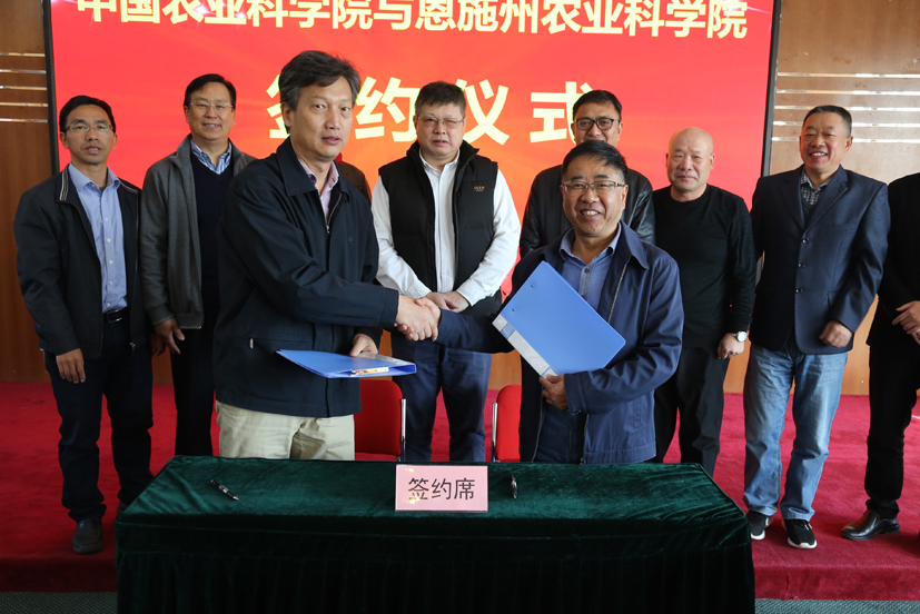 茆振川研究員首先做掛職恩施州農(nóng)科院期間工作匯報(bào)。隨后,院人事局、蔬菜所分別與恩施州農(nóng)科院就博士后聯(lián)合培養(yǎng)、富硒產(chǎn)業(yè)研究和生物菌肥研究簽訂合作協(xié)議,雙方出席人員充分開展座談交流。李衛(wèi)東院長(zhǎng)一行還參觀了質(zhì)檢中心和生物技術(shù)室實(shí)驗(yàn)室。