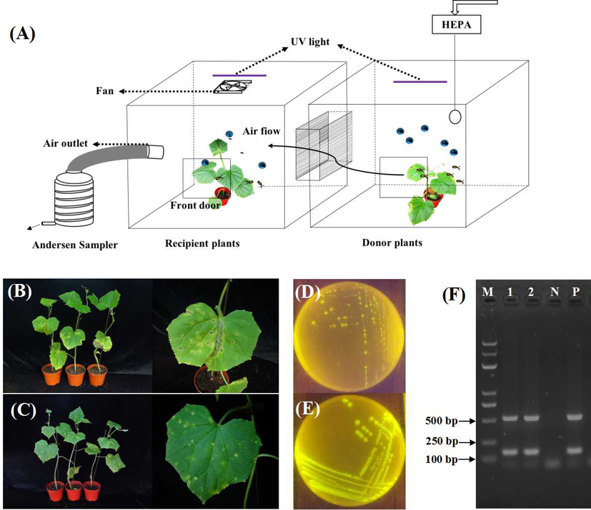 目前公認的植物細菌病害的傳播途徑主要包括種子帶菌、土壤帶菌、風(fēng)雨、水流傳播以及農(nóng)事操作等被動傳播方式。在設(shè)施生產(chǎn)上,由扁桃假單胞流淚致病變種(Pseudomonas amygdali pv. lachrymans,Pal)引起的黃瓜細菌性角斑病在適宜的溫濕度條件下可在一周之內(nèi)由發(fā)病中心株迅速傳播擴散至整個溫室。這些傳統(tǒng)的傳播途徑難以解釋黃瓜細菌性角斑病在設(shè)施棚室快速傳播的現(xiàn)象。