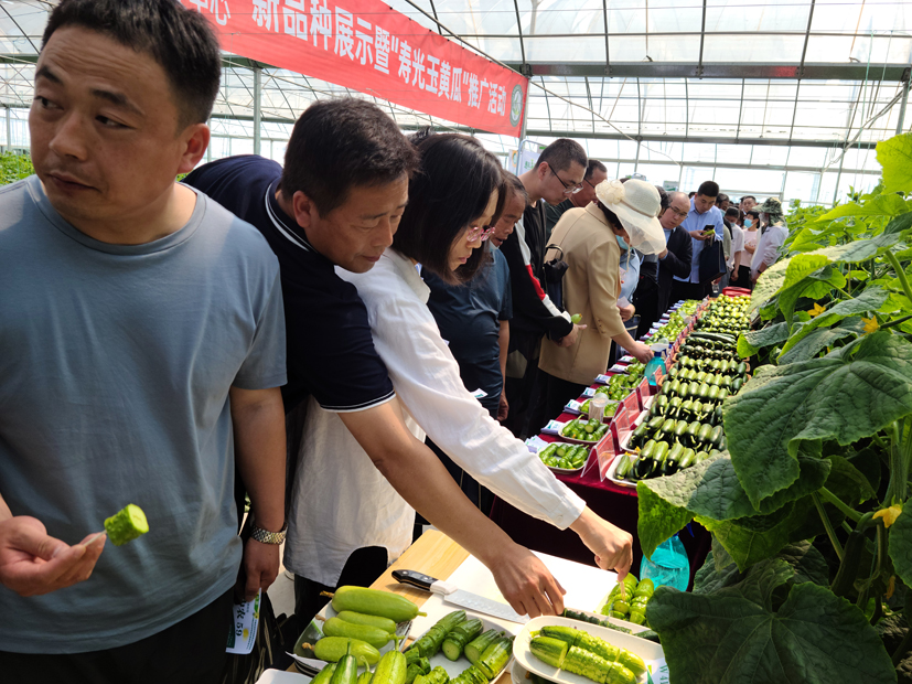 5月21日,中蔬種業(yè)科技(北京)有限公司在在壽光中國農(nóng)業(yè)科學院蔬菜研發(fā)中心寨里基地組織召開2021年春黃瓜新品種展示會。