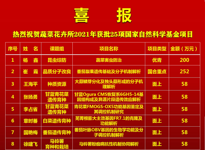 辦實(shí)事 開新局——蔬菜花卉所2021年度國家自然基金立項(xiàng)創(chuàng)歷史最高