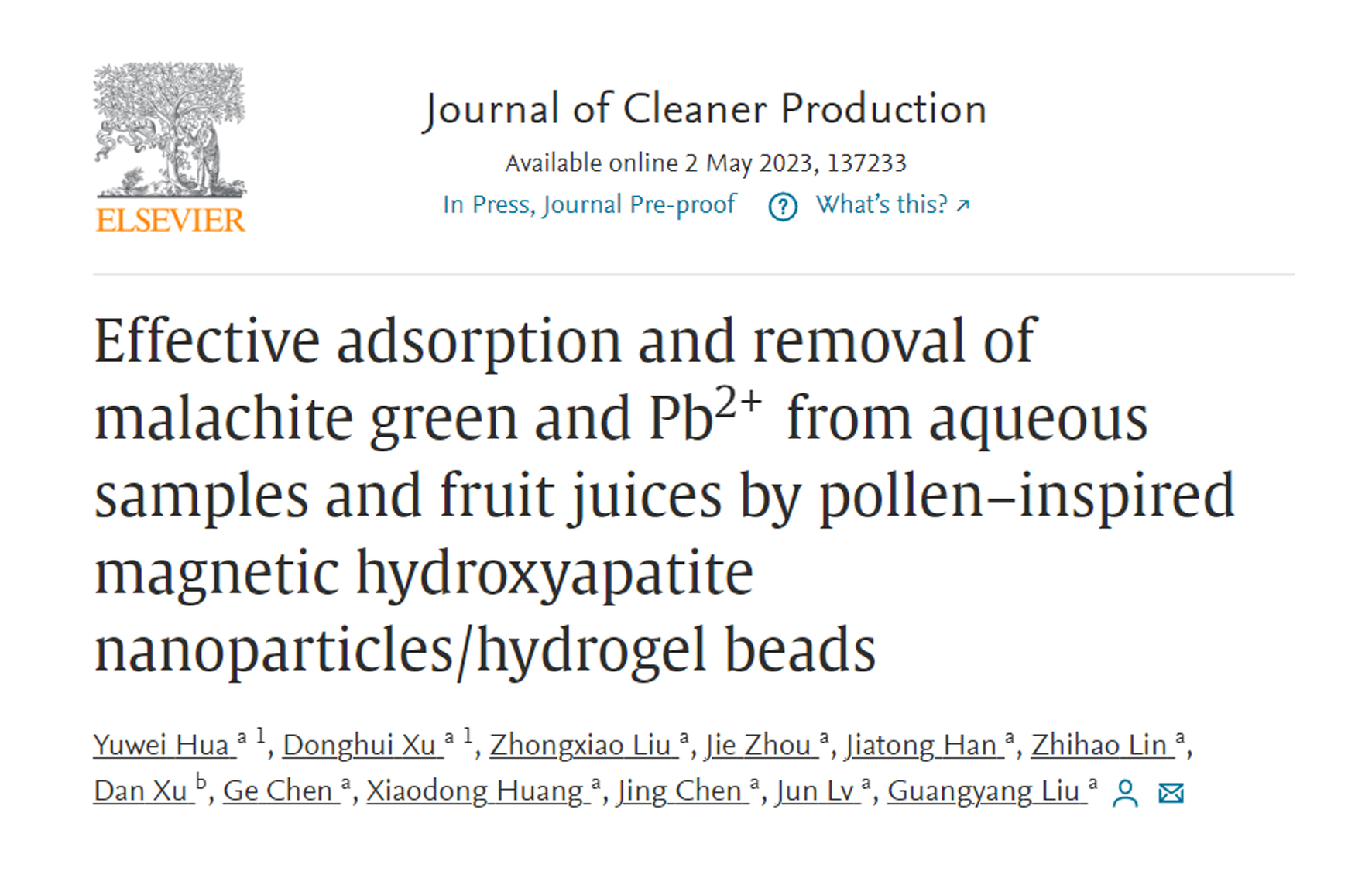 • 2023-05-04 質(zhì)量安全課題組研發(fā)新型仿生水凝膠微球并用于混合污染物吸附去除