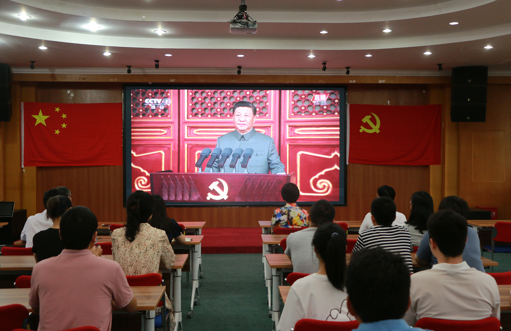7月1日,慶祝中國共產(chǎn)黨成立一百周年大會(huì)在天安門廣場隆重舉行,習(xí)近平總書記發(fā)表重要講話。蔬菜花卉所全體所領(lǐng)導(dǎo)和全所黨員干部職工180余人共同集體收看大會(huì)直播。