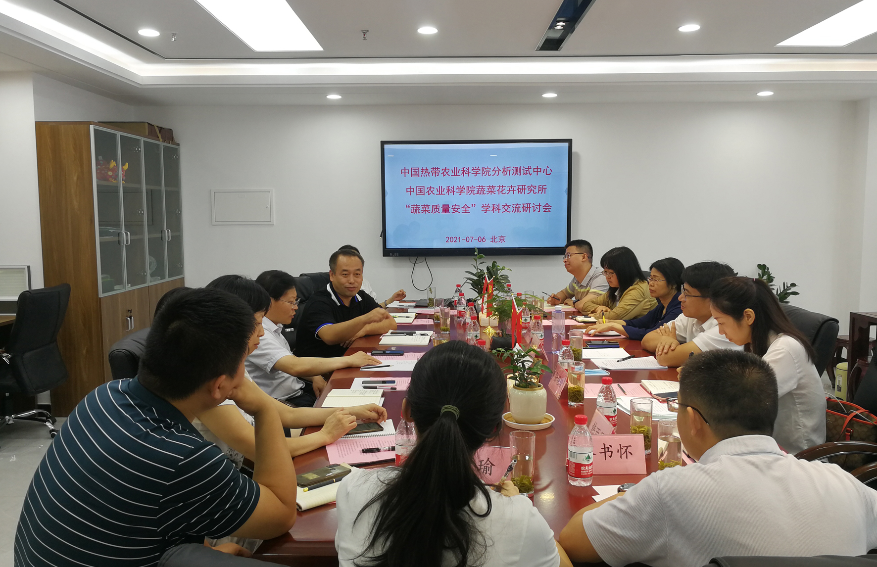 7月6日,中國熱帶農(nóng)業(yè)科學(xué)院分析測試中心黨委書記徐志一行8人到蔬菜花卉所交流座談科技創(chuàng)新與合作相關(guān)事宜。蔬菜花卉所副所長張圣平、科研處處長李蕾出席會(huì)議,質(zhì)量安全與檢測技術(shù)研究室主任徐東輝主持會(huì)議。