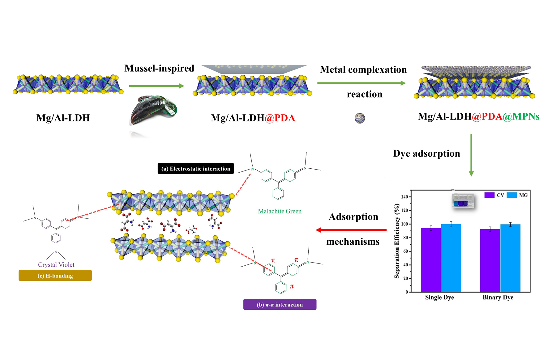 近日,中國農(nóng)業(yè)科學(xué)院蔬菜花卉研究所質(zhì)量安全課題組成功制備了新型三元仿生納米復(fù)合材料(LDH@PDA@MPNs),并解析了其結(jié)構(gòu)特征、農(nóng)業(yè)化學(xué)污染物吸附識別性能和控制去除機(jī)理。相關(guān)研究成果“Mussel-inspired triple bio...
