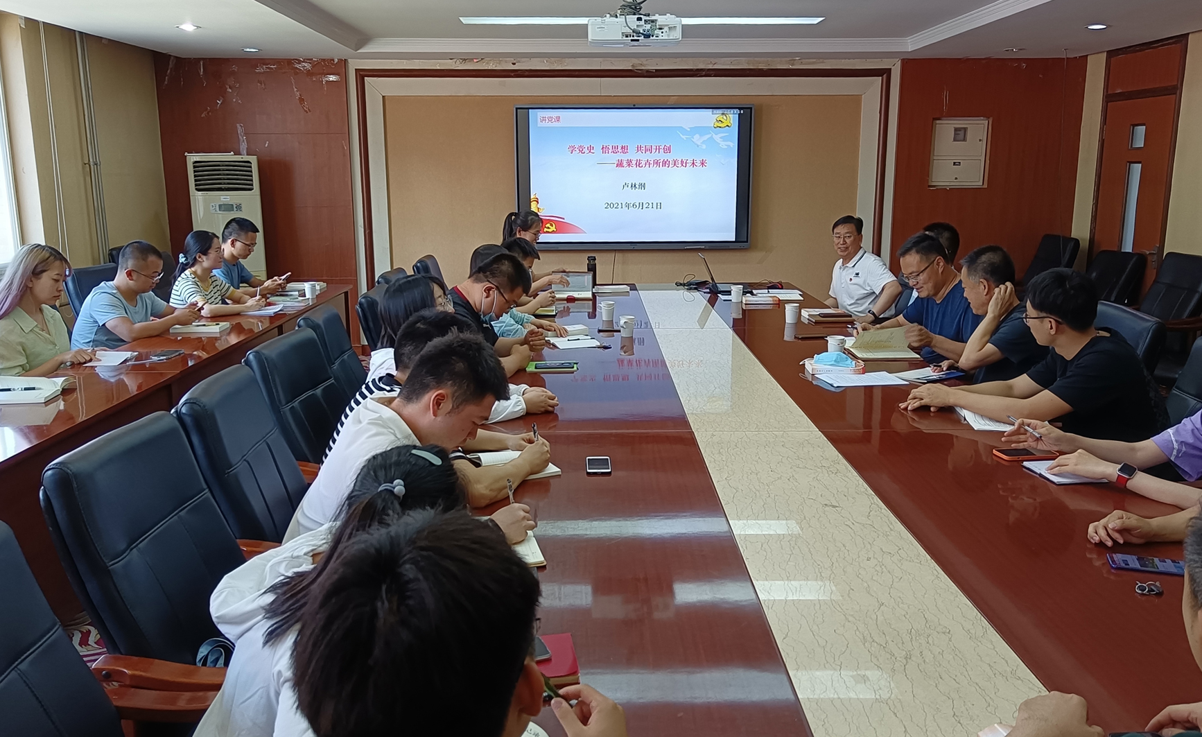 6月21日,蔬菜花卉研究所第十支部與第十一支部聯(lián)合開展“上黨課,學(xué)黨史”活動,本次活動邀請到蔬菜花卉研究所副所長盧林綱為大家講黨史,形式迎接中國共產(chǎn)黨百歲華誕。兩個黨支部共24人出席。