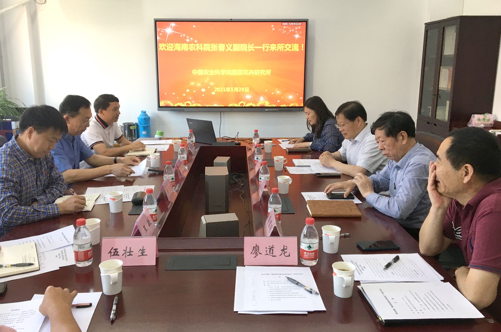 5月29日,海南省農(nóng)科院副院長張春義、三亞研究院常務(wù)副院長劉光亮等一行到訪蔬菜花卉所,就推動雙方開展聯(lián)合創(chuàng)新共同組建番茄研究團(tuán)隊(duì)進(jìn)行座談交流。副所長張圣平、大宗蔬菜產(chǎn)業(yè)技術(shù)體系首席科學(xué)家杜永臣等參加會議,科研處處長李蕾主持會議。