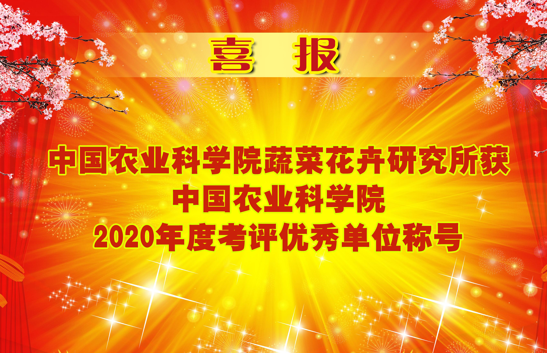 • 2021-04-27 喜報!蔬菜花卉所獲中國農(nóng)業(yè)科學院2020年度考評優(yōu)秀單位稱號