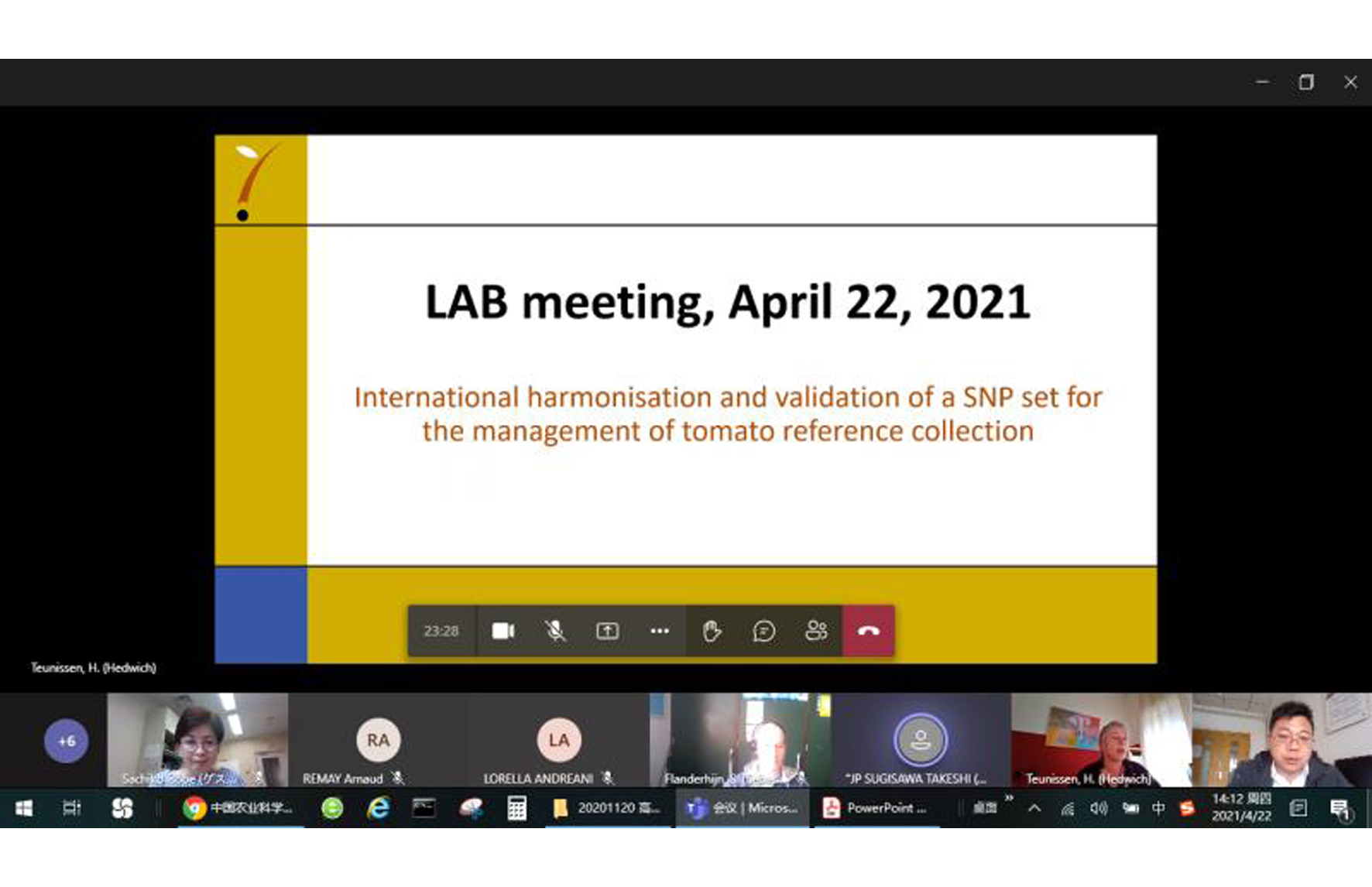 • 2021-04-27 蔬菜花卉研究所參加番茄品種管理SNP標記國際統(tǒng)一和驗證項目協(xié)調(diào)會