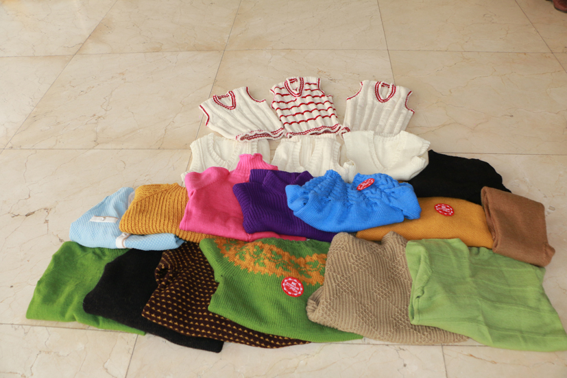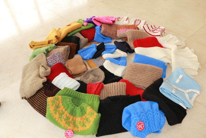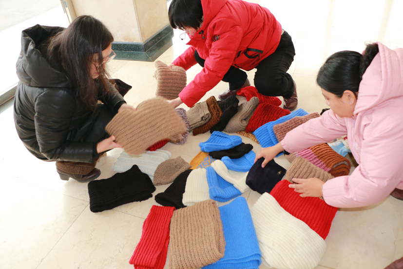 本次編織愛心織品做到了物盡其用,共編織少年兒童用的毛衣、圍巾、帽子、手套等愛心織品55件。