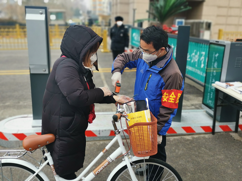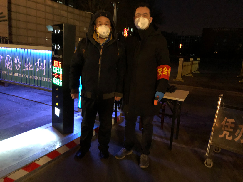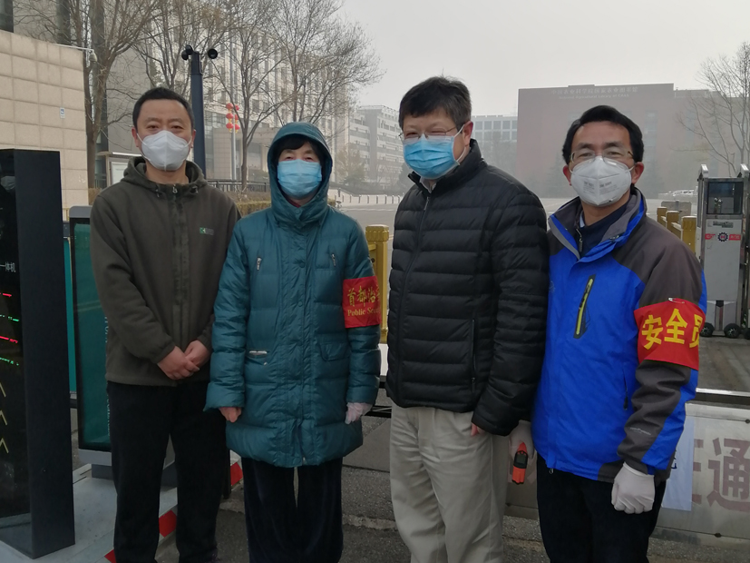 為了更加有效的開展防控,研究所積極配合院區(qū)各項(xiàng)工作,通過自愿報(bào)名,遴選出11名干部參加院區(qū)門崗值守工作。2月21日早7點(diǎn),張友軍所長、周霞書記帶隊(duì)來到院區(qū)西門、南門溝通協(xié)調(diào)門崗值守輪班工作,深入一線鼓舞打氣。張揚(yáng)勇老師、王立浩老師第一班值守院區(qū)西門和南門。帶隊(duì)組長張揚(yáng)勇總結(jié)第一階段值守情況,并就如何更加合理的管控進(jìn)出院區(qū)人員和如何更好的識(shí)別進(jìn)出人員個(gè)人證件分享經(jīng)驗(yàn)。第二班和第三班張志剛老師、董春娟老師、蔡路老師、徐東輝老師、王海平老師、謝學(xué)文老師和王萬興老師督導(dǎo)安保人員履職盡責(zé),配合疏導(dǎo)車輛、人員檢查、體溫測量、人員登記等工作,確保人人查驗(yàn)身份,人人測量體溫,人人佩戴防護(hù)口罩。晚上7:30,張友軍所長來到了第四班薄凱亮老師和劉建剛老師的值守現(xiàn)場,對(duì)大家辛勞守衛(wèi)院區(qū)“第一道防線”表示感謝,并表示在院所需要的時(shí)候大家挺身而出,用實(shí)際行動(dòng)做表率,圓滿完成院黨組交給我們所的任務(wù)。