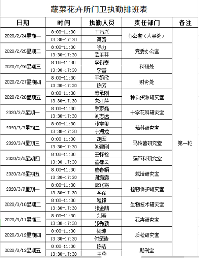 二月以來,新型冠狀病毒肺炎疫情防控工作更加嚴(yán)峻,蔬菜花卉研究所嚴(yán)格按照院疫情防控應(yīng)急指揮中心統(tǒng)一部署,進(jìn)一步落實(shí)好疫情防控各項(xiàng)措施。研究所全體職工始終保持戰(zhàn)斗熱情,不懼風(fēng)險(xiǎn)、眾志成城,堅(jiān)決打贏疫情防控總體戰(zhàn)、人民戰(zhàn)、阻擊戰(zhàn)。