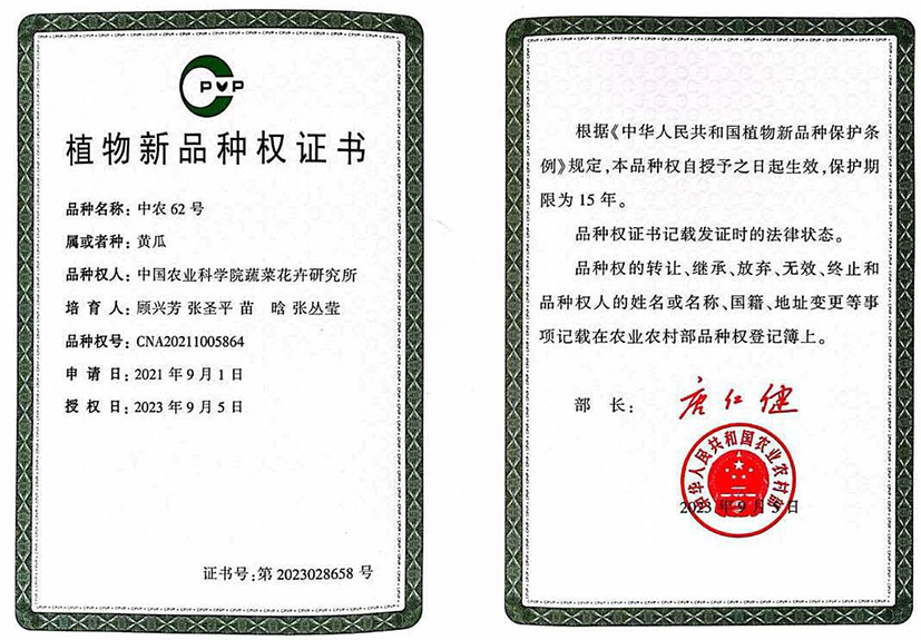 中農(nóng)62號(hào)已獲新品種權(quán)證書和非主要農(nóng)作農(nóng)作物品種登記證書,具有完全自主知識(shí)產(chǎn)權(quán)。種植該品種不僅可以節(jié)約生產(chǎn)成本和人工成本,同時(shí)也更加綠色環(huán)保,提升了農(nóng)產(chǎn)品的食用安全性,而且在帶動(dòng)農(nóng)民增收致富,助力鄉(xiāng)村振興中也起到了積極作用。