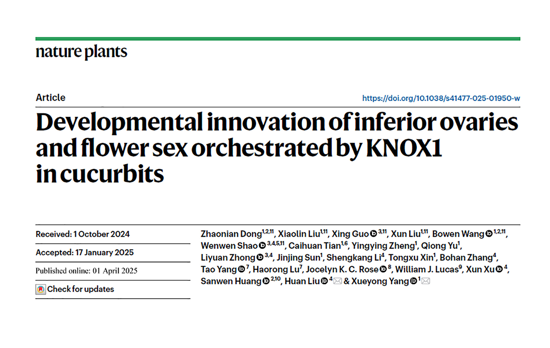 Nature Plants|蔬菜花卉研究所楊學(xué)勇團(tuán)隊(duì)聯(lián)合深圳農(nóng)業(yè)基因組研究所,華大生命科學(xué)研究院揭示“黃瓜下位子房發(fā)育”的進(jìn)化密碼