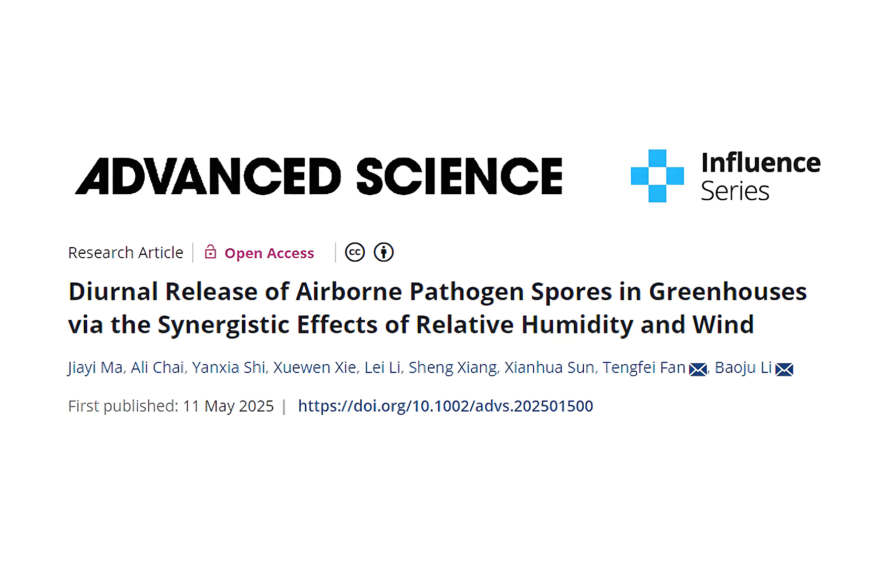 在溫室蔬菜種植業(yè)蓬勃發(fā)展的同時(shí),病害問題也如影隨形,給農(nóng)戶帶來了巨大的經(jīng)濟(jì)損失,同時(shí)也給蔬菜產(chǎn)品安全帶來了很大的隱患。近日,中國(guó)農(nóng)業(yè)科學(xué)院蔬菜花卉研究所李寶聚團(tuán)隊(duì)在國(guó)際知名期刊Advanced Science(一區(qū)Top,IF=14.3)在線發(fā)表了題為“Diurnal Release of Airborne Pathogen Spores in Greenhouses via the Synergistic Effects of Relative Humidity and Wind”的研究文章。該研究揭開了溫室病害快速傳播的神秘面紗,讓我們一起看看那些微小的病原孢子是如何在溫室內(nèi) “興風(fēng)作浪” 的。