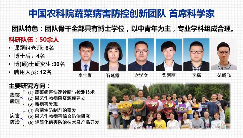 李寶聚研究員(中國農(nóng)科院蔬菜病害防控創(chuàng)新團(tuán)隊(duì)首席科學(xué)家、 “十三五”國家重點(diǎn)研發(fā)計(jì)劃項(xiàng)目首席科學(xué)家)作了題為“把論文寫在祖國的菜田里”的交流分享。他結(jié)合自身成長經(jīng)歷講述深厚的三農(nóng)情結(jié),介紹了蔬菜病害防控創(chuàng)新團(tuán)隊(duì)及承擔(dān)的國家級(jí)科研重點(diǎn)項(xiàng)目工作,并用七個(gè)代表性成果概括了團(tuán)隊(duì)在蔬菜病害診斷與綜合治理取得的突出業(yè)績(jī)。