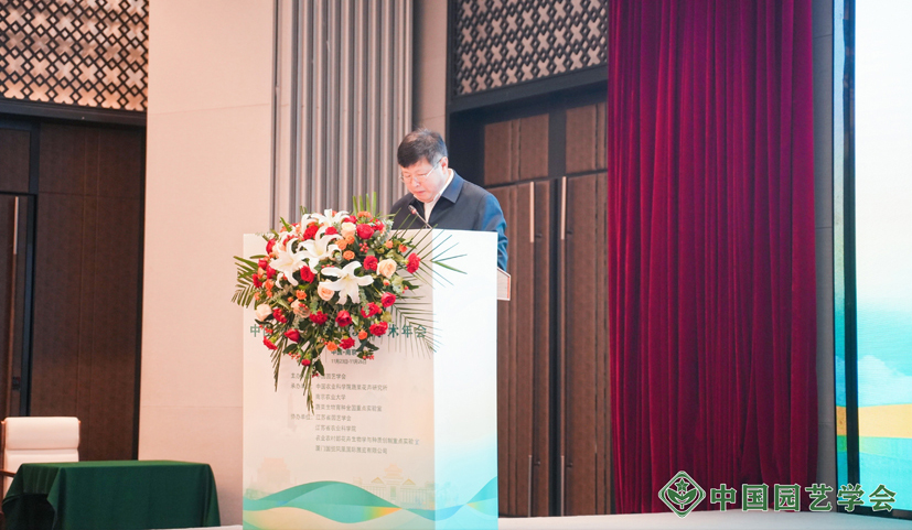 中國園藝學(xué)會(huì)黨委書記、副理事長兼秘書長張友軍研究員、江蘇省農(nóng)業(yè)農(nóng)村廳二級(jí)巡視員王昭同志,江蘇省科學(xué)技術(shù)協(xié)會(huì)黨組成員、副主席方勝昔同志,南京農(nóng)業(yè)大學(xué)校長陳發(fā)棣教授分別在大會(huì)開幕式上致辭。