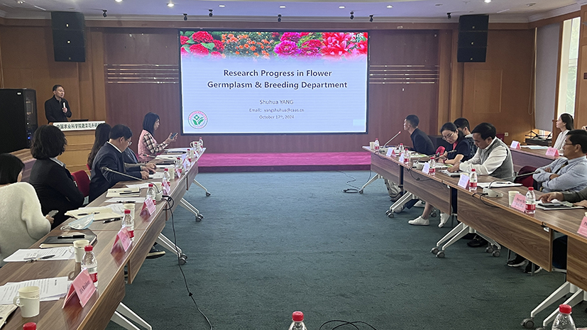 參觀結(jié)束后,雙方舉行了座談交流會。錢鈺副局長發(fā)表致辭,李蕾處長介紹了蔬菜花卉研究所情況,楊樹華研究員分享了花卉研究室的科研進展。交流會由副所長張圣平主持。